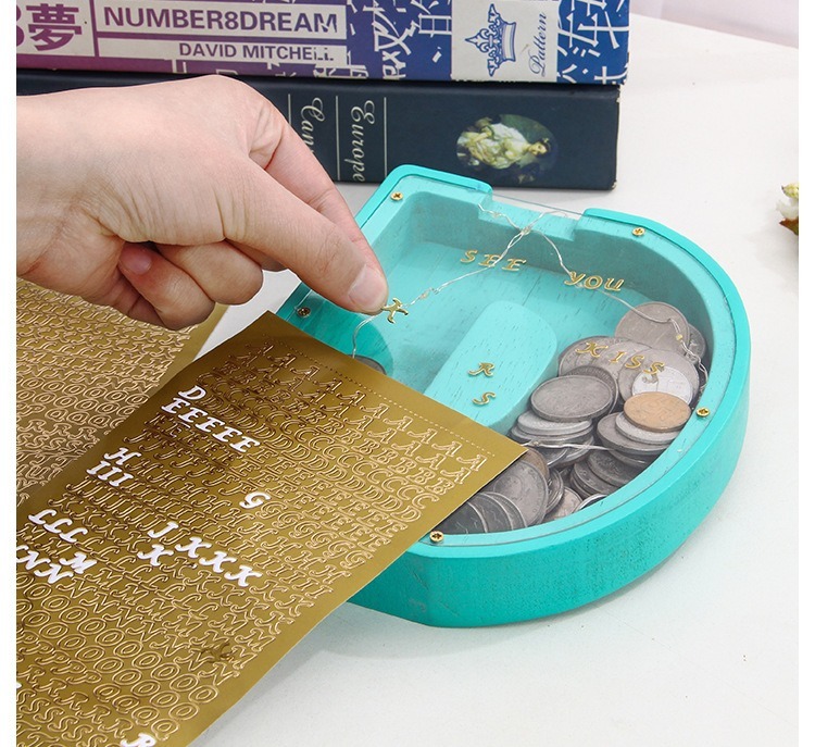 Salvadanaio in legno con 26 lettere inglesi, contenitore trasparente in acrilico per piccoli oggetti, speciale decorazione per la tavola di compleanno.
