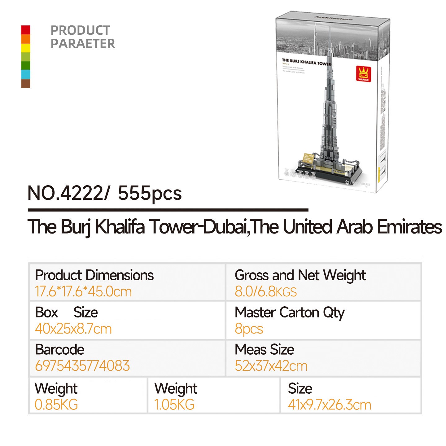 Wange - Burj Khalifa Dubai, Emirati Arabi Uniti Set di mini blocchi da costruzione 4222 (compatibile)
